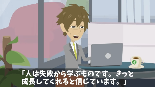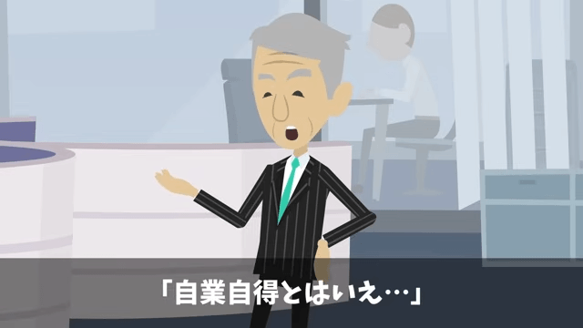 社長は主人公に迷惑をかけた男性社員たちについて謝ってくれました。 主人公はそんな社長に「いえ。過ぎたことですから、もういいんです」と言い、それから数年が経って…。