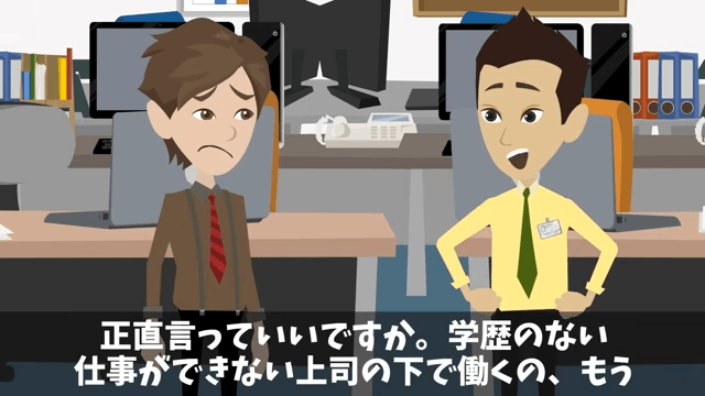 今回は『部下「無能上司は金輪際喋るな(笑)」俺「はーい」後日⇒商談でも無視した結果(笑)』を紹介します。 部下は主人公が大学を出ていないことを知った途端、態度を変えてきました。 そして部下は、主人公にコピーを頼み「学歴のない人って、こういう単純作業得意でしょ」と言ってきて…。