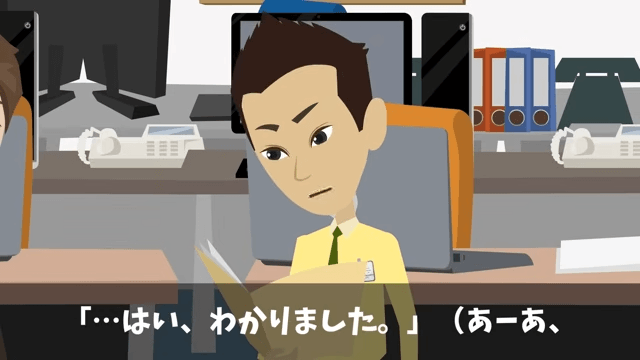 今回は『部下「無能上司は金輪際喋るな(笑)」俺「はーい」後日⇒商談でも無視した結果(笑)』を紹介します。 主人公が「わからないことがあったら何でも聞いて」と言うと、部下は「はい、ありがとうございます!」と頭を下げました。 そして主人公は資料を手渡し、部下に基本的な業務の流れを説明したのです。