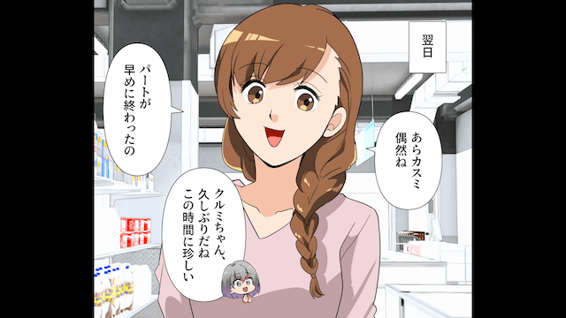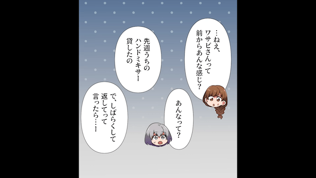 隣人に醤油を貸した翌日、スーパーで友人と会った主人公は、友人から隣人についての話を聞きました。 友人は隣人にミキサーを貸し、後日返してもらおうとしたのですが、隣人に「もともと私のだと思ってた〜」と言われてしまったようで…。