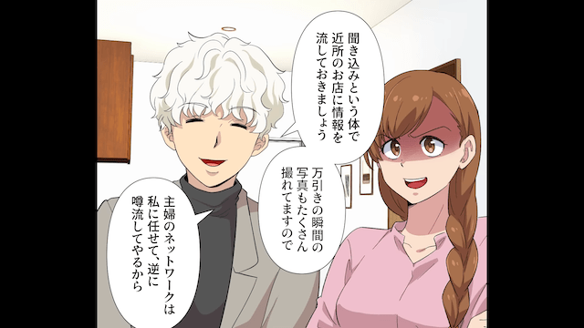 夫からの提案を受けてプロに調査してもらった結果、隣人が1週間で18件もの犯罪行為をしていることが発覚しました。 主人公や友人たちは一致団結し、隣人夫婦に反撃することにして…。