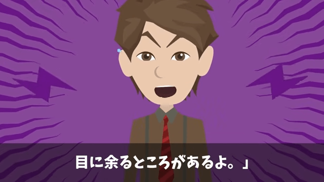 部下の態度を見てさすがに放っておけないと思った主人公は、部下を注意しました。 すると部下は「え?まさか俺に説教!?超うけんだけど」と言い出して…。