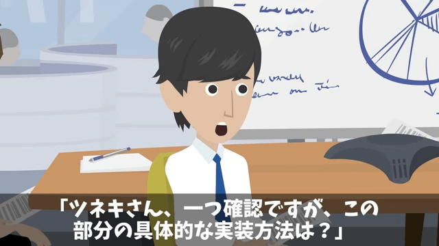 主人公は、提案内容を説明する部下のことを黙ったままじっと見つめていました。 すると担当者が「1つ確認ですが、この部分の具体的な実装方法は?」と部下に尋ねて…。