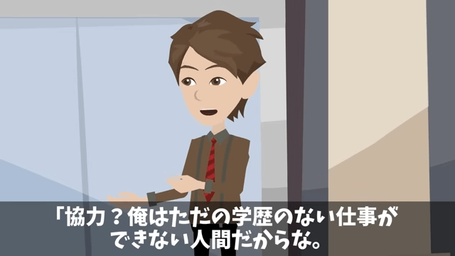部下は主人公に反省していると言い、商談に協力してほしいと頼みました。 しかし主人公は「協力?俺はただの学歴のない仕事ができない人間だからな」「優秀な君の役に立つことはできないかな」と冷たく突き放して…。