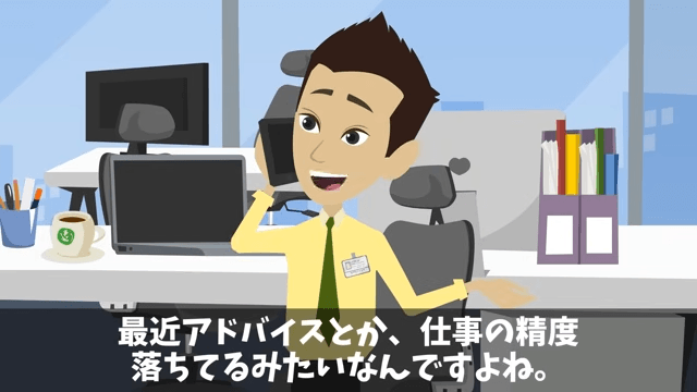 部下は主人公への不信感を植えつけるため、商談の担当者に電話をかけました。 そして部下は、主人公の仕事の精度が落ちていることを担当者に伝えたのです。