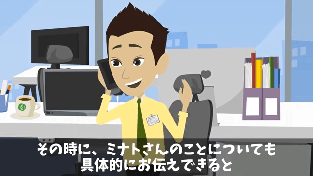 部下は次の商談では主人公の助言なしにフラットに見てほしいと担当者に伝えました。 そして部下は、その商談で主人公について具体的なことを伝えられるだろうと言ったのです。