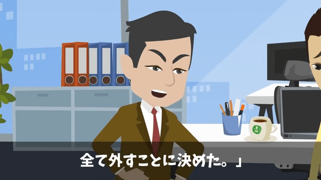 部下の上司は、すべての大型案件から部下を外すと宣言しました。 それを聞いた部下が「え…でも…」と言うと、上司は部下のせいで主人公や取引先との関係が最悪になったのだから当然だと言い…。