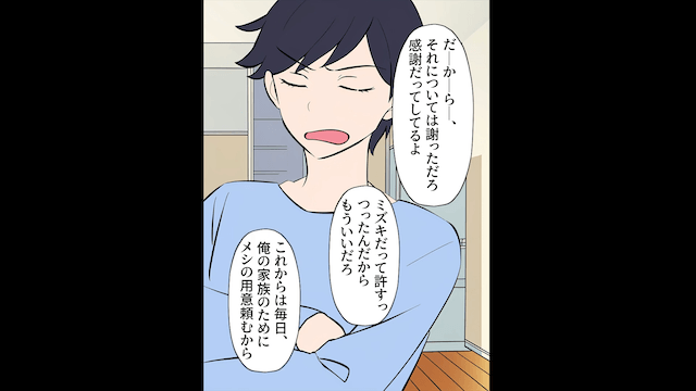 夫と口をきかなくなってから数日後、夫は主人公に謝罪をしてきました。 そして夫が反省したのだと思った主人公は、夫を許すことにしたのです。