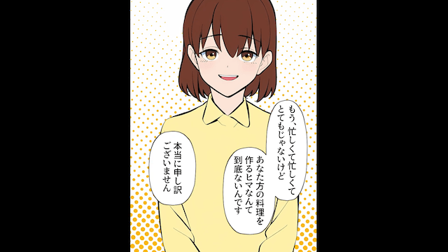 主人公を引きとめるため、義母は主人公にすり寄り、夫と義父は「貧乏ボロアパートくらいしか借りられないよな?」と言ってきました。 そこで主人公は、動画収益や他の仕事で夫の数倍稼いでいることを明かし「忙しくてあなた方の料理を作る暇なんて到底ないんです」と言ったのです。