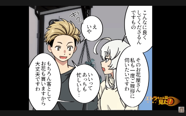 今回は『花屋からもらった花束の意味が衝撃的だった話』を紹介します。 ある日、夫は主人公に黄色いバラやカサブランカの花束を買ってきてくれました。 そして夫は以前、酔っぱらいに絡まれている人を助けており、その人の花屋で花束を作ってもらったのだと話してきたのです。 主人公が大喜びしていると、夫はそれからもいろんな花を贈ってくれるようになって…。