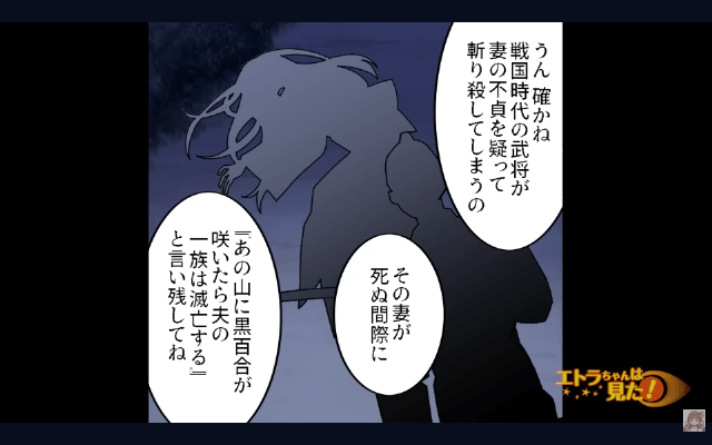 今回は『花屋からもらった花束の意味が衝撃的だった話』を紹介します。 主人公はたびたび花屋で花を買うようになり、冬が明けると庭にはスノードロップや鈴蘭、黒い百合が咲きました。 そして主人公はこの花たちを、ママ友たちに見せることにしたのです。 すると庭を見たママ友が「これ本当に花屋さんからもらったんですか?」と何やら心配そうな顔で聞いてきて…。