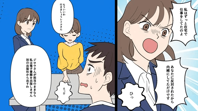 主人公が人気作家との打ち合わせをしていると、夫が編集者としてやってきました。 そして作家の前で主人公のイラストをバカにした夫は、作家から怒られた挙句、契約を打ち切られてしまったのです。