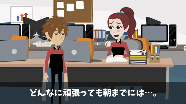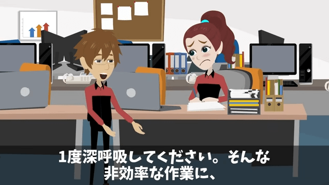 女性社員は自分1人ではどんなに頑張っても朝までには終わらないと嘆きました。 そこで主人公は「そのペンを置いて、一度深呼吸してください」と女性社員に言い…。