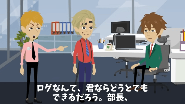 係長は主人公の自動化ツールのせいで、売上予測データが消えたと言います。 そこで主人公は、係長が手動で削除したログが残っていることを説明したのですが…。