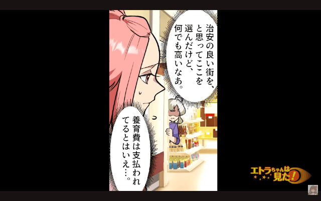 主人公は息子のためを思い、治安のいい町に引っ越してきたつもりでいました。 しかしこの辺りは以前住んでいたところよりも物価が高く、家計が圧迫されていたのです。