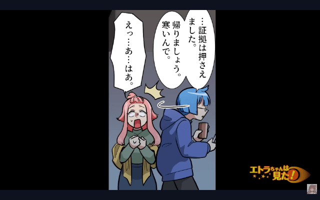 男性は「…証拠は押さえました」「帰りましょう」と言い、その場を離れて…。