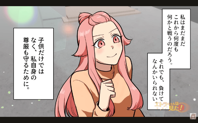 息子は誤解からひどい発言をしてきた友達からも謝罪を受け、学校に居場所を取り戻して…。 主人公はこれから何かと戦うことになっても、息子と自分自身の尊厳を守るため、負けないように頑張ろうと心に誓うのでした。