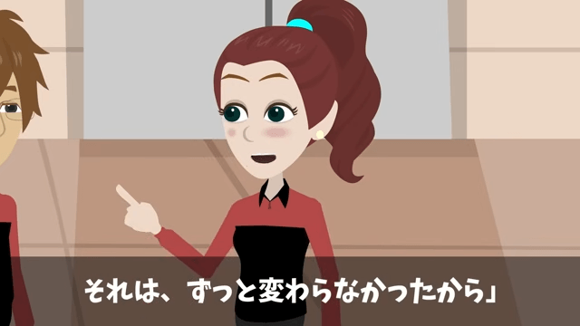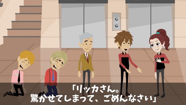 話を聞いていた女性社員は「…本当は、こんなにすごい人だったんだね」と主人公に言いました。 それに対し主人公は「驚かせてしまって、ごめんなさい」と謝って…。