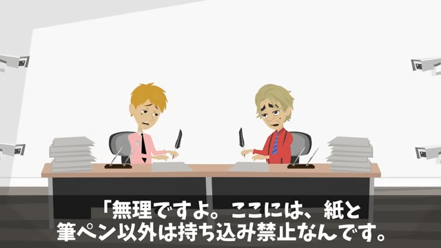 部長は「パソコンを使わせてほしい。せめて、ボールペンを使わせてもらえないかな」と言いました。 すると係長は「無理ですよ。ここには、紙と筆ペン以外は持ち込み禁止なんです」と言い…。