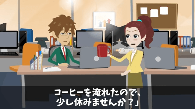 部長と係長は自分たちが否定した技術に管理されながら、アナログの重みに向き合うことになりました。 一方、女性社員は主人公に「コーヒーを淹れたので、少し休みませんか?」と声をかけて…。