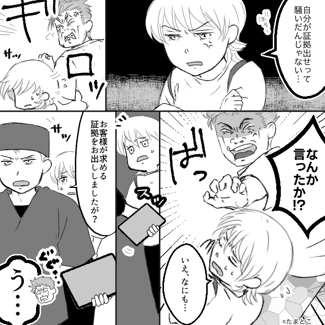 店内に戻ってきた店員は、防犯カメラの映像を見せ、男性客を追い詰めました。 男性客は逆ギレしたあと、主人公家族にふざけた謝罪をします。