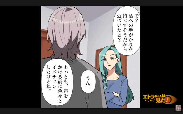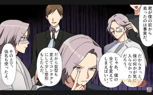 彼氏は姉に振られた後にバーで主人公を見つけ、姉とやり直すために主人公に近づいたのだと話し出しました。 さらに彼氏は主人公に近づく前に、髪型を変えてコンタクトにし、整形をした上に、偽名まで使っていたようで…。