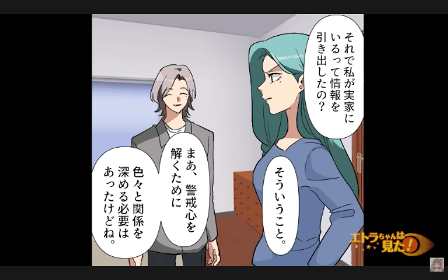 今回は『彼氏を姉に紹介した瞬間、姉の態度が豹変したワケ』を紹介します。 姉に振られて傷心していた彼氏は、バーで主人公を見つけました。 そして彼氏は主人公を姉に近づく手がかりだと思い、髪型を変え、コンタクトをし、整形までして主人公に近づいたのです。 さらに彼氏が主人公に伝えていた名前は偽名で…。