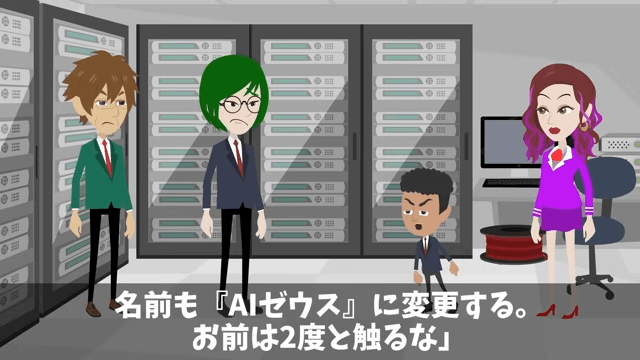 今回は『二代目社長が私の”正体”を知らずに不当解雇した話』を紹介します。 社長がサーバーをガラクタ扱いしたため、主人公は自分が10年かけて構築したものであることを説明しました。 すると社長は、今日からこのサーバーに新型のAIを接続すると言い出して…。