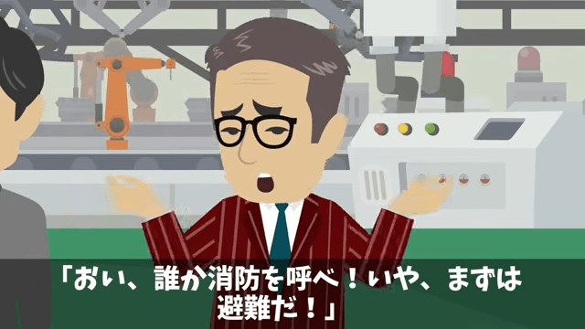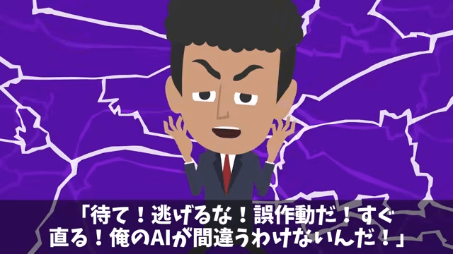 役員たちが避難しようとしている中、社長は「待て!逃げるな!誤作動だ!すぐ直る!俺のAIが間違うわけがないんだ!」と言いました。 すると会長が「どうなっているんだ!」と社長に迫って…。