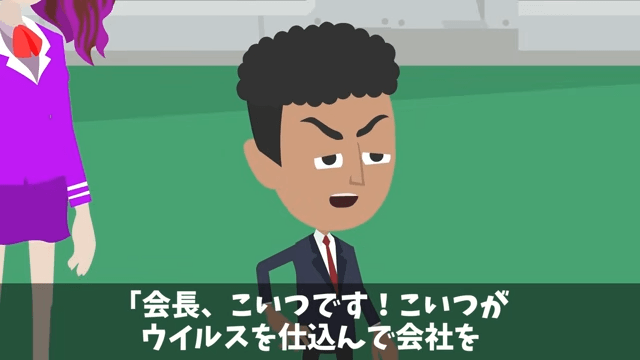 部下が主人公は何もしていないと言うと、社長は「黙れ!お前も共犯だ!まとめて刑務所ぶち込んでやる!」と言いました。 そして社長は会長に、主人公がウイルスを仕込んで会社を乗っ取ろうとしたのだと伝えたのです。