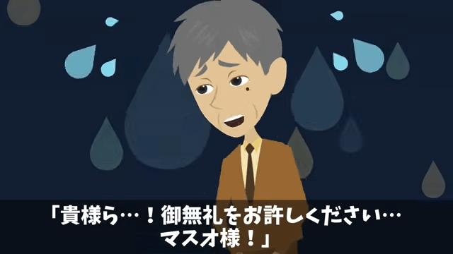 会長が「控えろ無礼者ォォ!」と一喝したため、社長と女性社員は戸惑いました。 そして会長は主人公に「御無礼をお許しください…」と謝罪したのです。