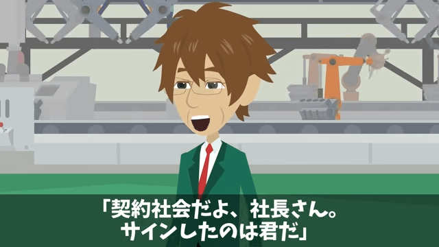社長は字が小さくて面倒だったため、契約書は読んでいなかったと明かしました。 主人公がそんな社長に「契約社会だよ、社長さん。サインしたのは君だ」「会社のトップかもしれないが、システムのトップは私だ」と言うと…。