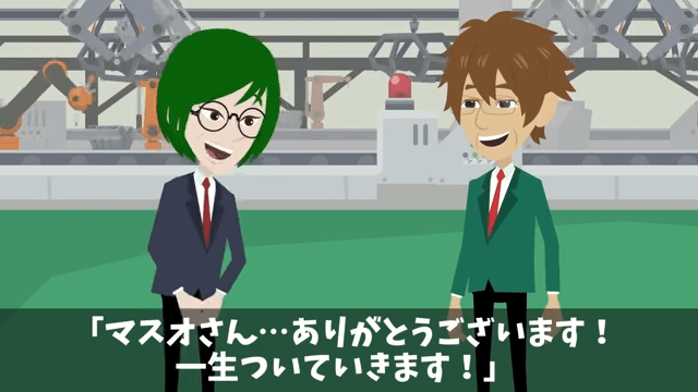主人公のおかげで工場の責任者となった部下は「ありがとうございます!一生ついていきます!」と主人公に感謝しました。 それに対し主人公は「ははは。まあ、ぼちぼちやっていこうか」と言い…。