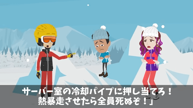 今回は『二代目社長が私の”正体”を知らずに不当解雇した話』を紹介します。 損害賠償が払えない社長と女性社員は、バックアップサーバーがある雪山で働くことになりました。 そして監督は社長と女性社員に「冷却システムが故障中なんだよ」と言い…。