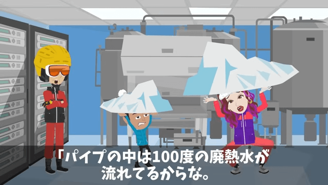 今回は『二代目社長が私の”正体”を知らずに不当解雇した話』を紹介します。 社長たちは氷塊を切り出し、氷をサーバー室まで運ぶことになりました。 氷を持った社長は「くそっ!重てぇ!足が埋まる!」と文句を言いますが…。