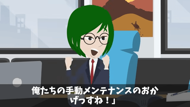 今回は『二代目社長が私の”正体”を知らずに不当解雇した話』を紹介します。 社長と女性社員は互いに責任転嫁をしつつ、過酷な作業を続けていました。 一方そのころ、主人公は部下から「新しい工場の稼働率、過去最高ですよ!」と報告されて…。