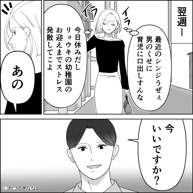 それから夫は、浮気相手の子育てや家事を、主人公と比較するようになりました。 そして些細なケンカをきっかけに、夫婦の間には大きな亀裂が生まれてしまいます。