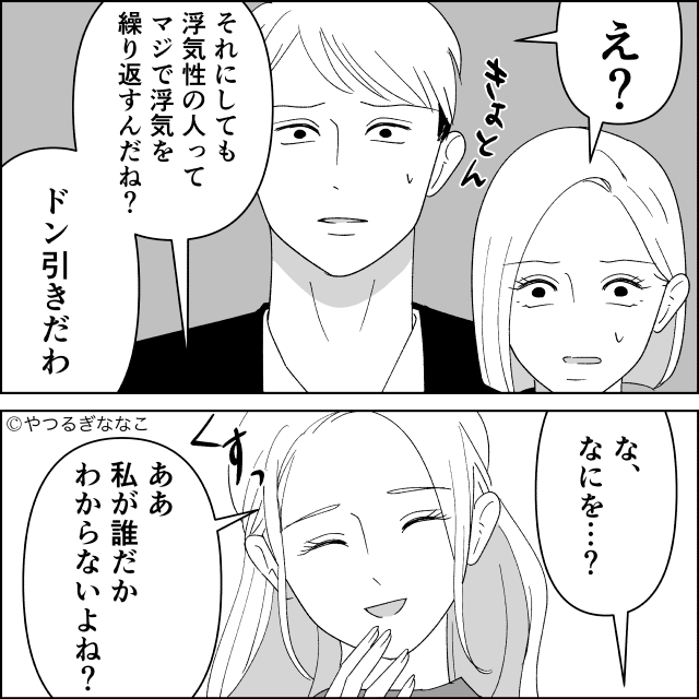今回は『浮気相手と再婚した最低夫の話』を紹介します。 お互いの浮気がバレ、青ざめる夫と浮気相手。 そんな状況で、女性店員が「予約した部屋に一緒に行こっか」と言い出し…。