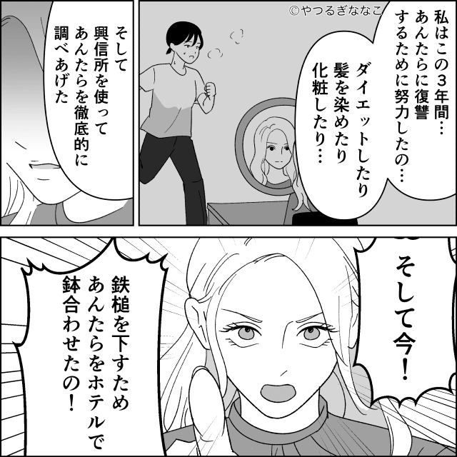 女性店員は「よかった、2人のその顔が見られて」とつぶやき、自分は主人公だと打ち明けました。 男性も主人公の協力者で、主人公は夫と浮気相手に復讐をするために2人に近づいたと話します。