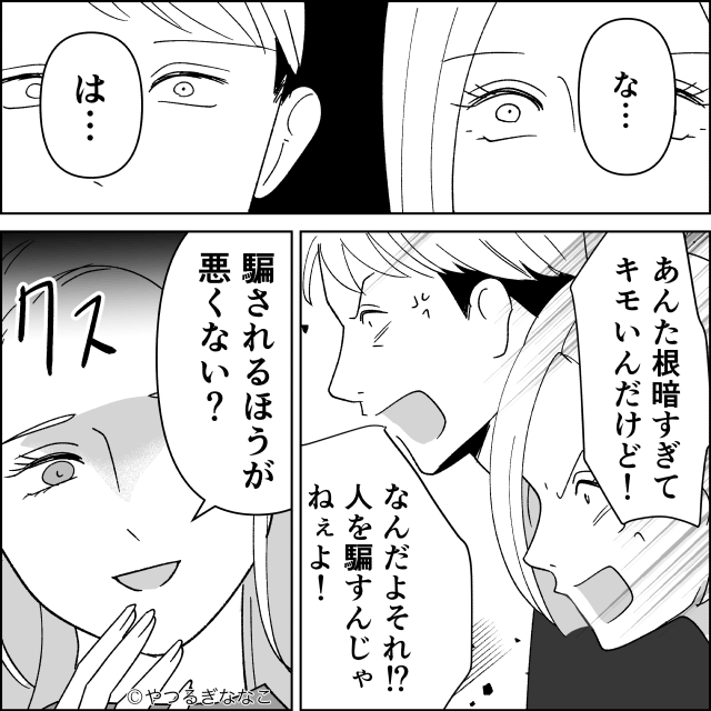 だまされたことに気づいた夫と浮気相手は、激怒して…。