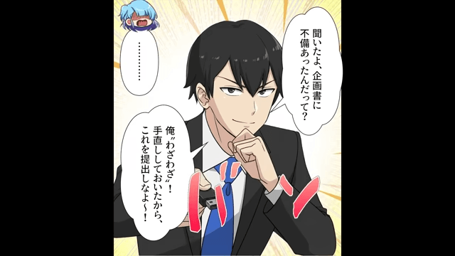 ある日、主人公は上司から企画書に不備があったから修正してほしいと言われました。 そこで主人公がオリジナルのデータを確認してみると、先輩がデータを改ざんしていたことがわかって…。