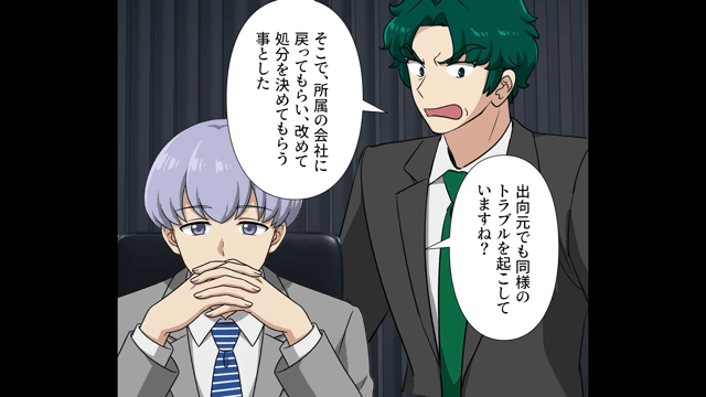人事部の社員は先輩に向かって「あなたには出向元に戻っていただきます」と言いました。 さらに上司も、先輩に対してのさまざまな苦情がきていることを説明して…。