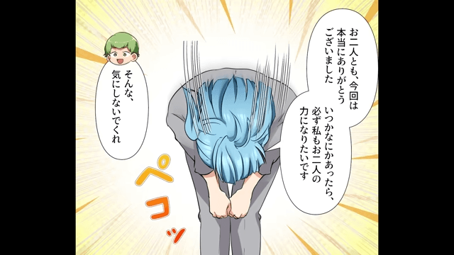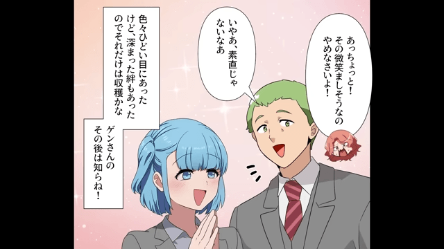 これまでの悪行が明るみに出た先輩は、出向元の会社に戻ることになります。 そして主人公は、いろいろとひどい目にあったものの、同僚たちとの絆が深まったことは収穫だと思ったのでした。