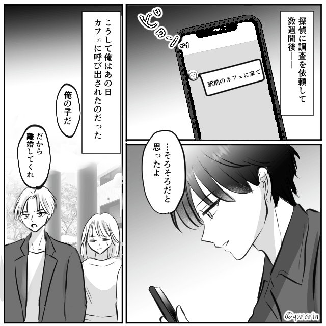調査の結果、妻は複数の男性と会っており、さらに浮気相手に貢いでいました。 そして数週間後、主人公は妻に呼び出され、離婚を突きつけられたのです。