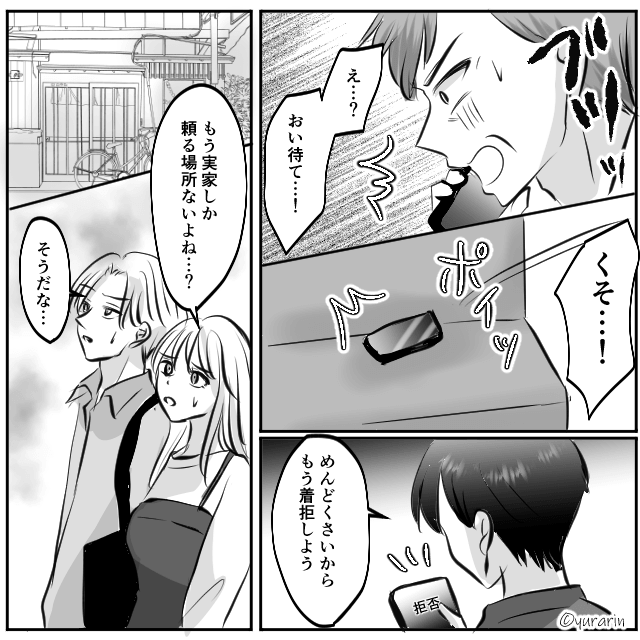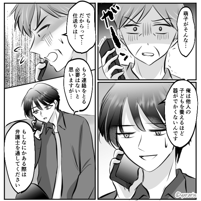 義父に仕送りを催促されたため、事情を説明して離婚したことを伝えた主人公。 そして「だからって…仕送りは…」と焦る義父に構わず、一方的に電話を切ったのでした。