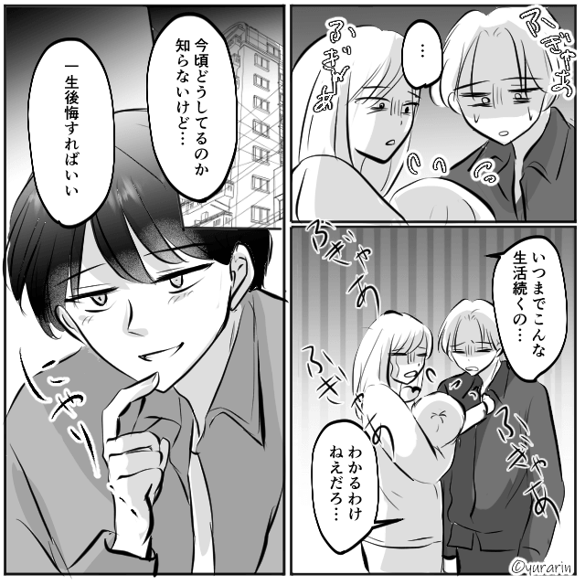離婚後、主人公は顔つきが穏やかになり、周囲から「幸せそうだな」と言われるようになりました。 一方、妻と浮気相手は、子どもを育てながら寝ずに働くハメに。