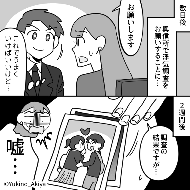 不審に思った主人公が調査をすると、なんと夫は浮気をしていて…。