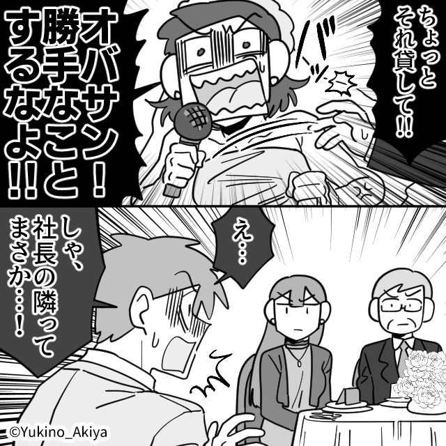 ビデオレターを使って、娘の本性と夫の浮気を暴露した主人公。 会場は騒然となり、夫と娘は慌てます。